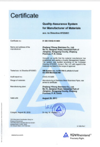 公司嚴格按ISO9001:2015《質量管理體系—要求》、ISO14001:2015《環(huán)境管理體系 要求及使用指南》、ISO 45001:2018《職業健康管理體系 要求及使用指南》和TSG 07—2019《特種設備生產和充裝單位許可規(guī)則》,建立完善的管理體系。公司擁有國內較大的12000KN冷拔機組和先進的全溫控不銹鋼固溶退火爐等生產設備,同時具有ET16-159渦流探傷儀、UT16-159超聲波探傷儀、UT159-830超聲波探傷儀、H159-630水壓試驗機、WAD—600液壓材料試驗機、4XB電腦金相顯微鏡、JQ—300沖擊試驗機、HBRVU—187.5硬度計、島津光譜儀、化學分析儀、晶間腐蝕試驗等完善的檢測設備。